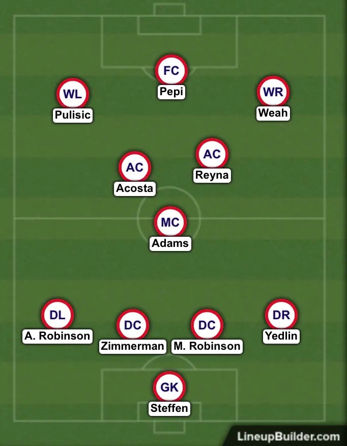 I would start Horvath in goal because there’s no need to risk Steffen picking up an injury (he had recent back issues at Man City) and he already looked a little shaky against Panama. I would give Antonee Robinson a rest and play Yedlin at left back, which he has done before. I would also play Aaron Long and Miles Robinson together at center back, then bring on Erik Palmer-Brown for Robinson. There is no doubt that Miles Robinson and Zimmerman are the USMNT’s first-choice CB pairing, so you need to see Long and EPB in these situations.