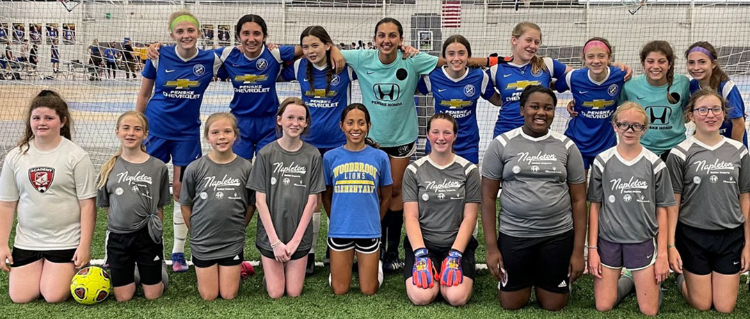 Participants in the Carmel Dads’ Club big sisters/little sisters soccer program with Carmel FC (Carmel’s Travel Program). Back, from left, Lyla Barnhart, Rylie Heath, Ava Donofrio, Lily Bose, Amit Gat, Molly Broach, Liz Putts, Olivia Ritchey, and Kate Huitsing. Front, from left, Gabriella Roesner, Natalie Guibault, Adeline King, Molly Keen, Ruby Crosby, Alexis Westphal, Zipporah Brown, Madeline Nies, and Carly Orr. (Photo courtesy of Abigail Donofrio) Read full Story from the Carmel Current