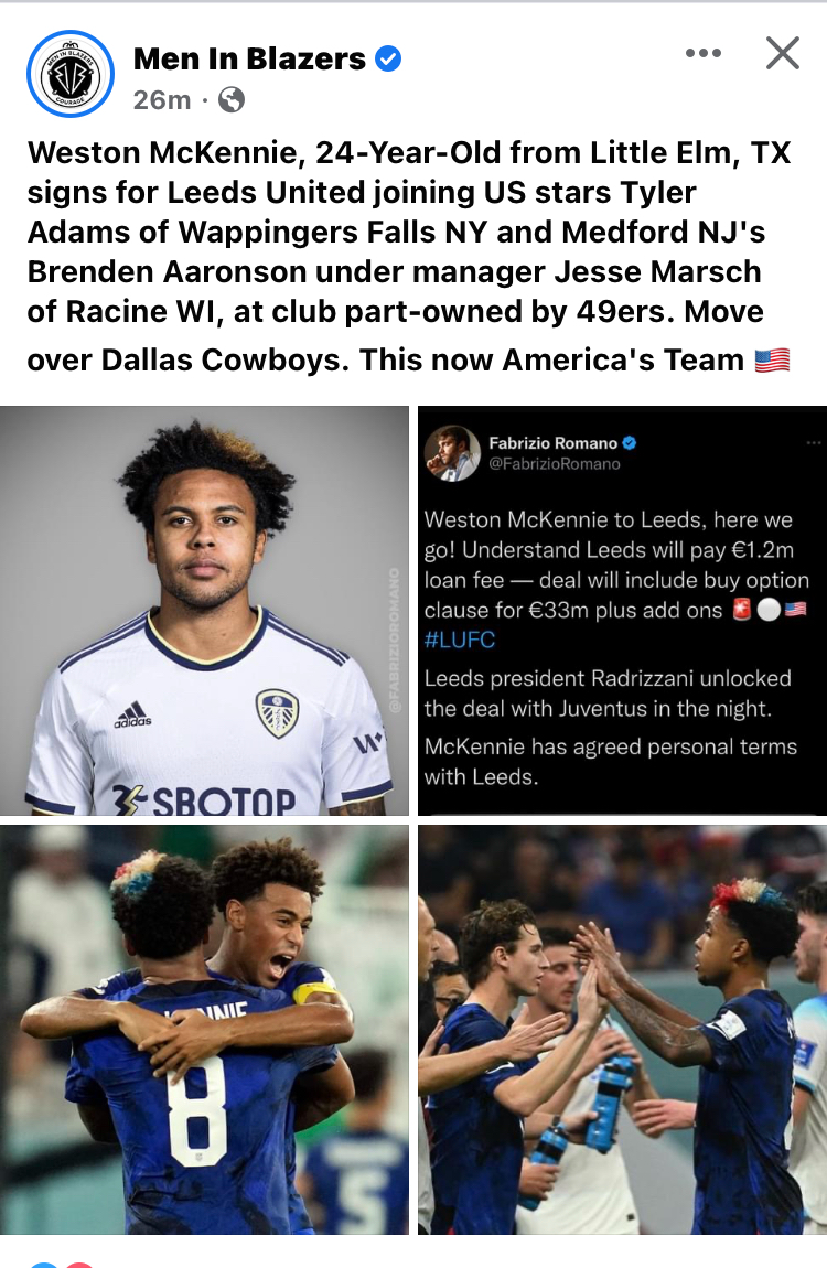 It’s Official – Leeds United States of America has added American Weston McKennie! Leeds & Fulham America’s Teams!