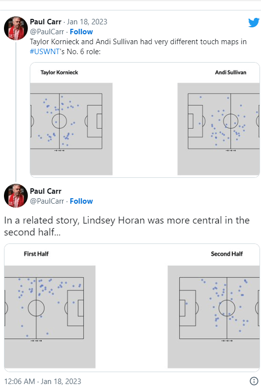 The reality for this type of game is the result doesn’t matter. It’s about giving individual players opportunities to be exposed to the international level as part of their development process. There is the team aspect, of course, but as the U.S. was playing with an interim coaching staff, there was less value there Wednesday night as there might have been otherwise.