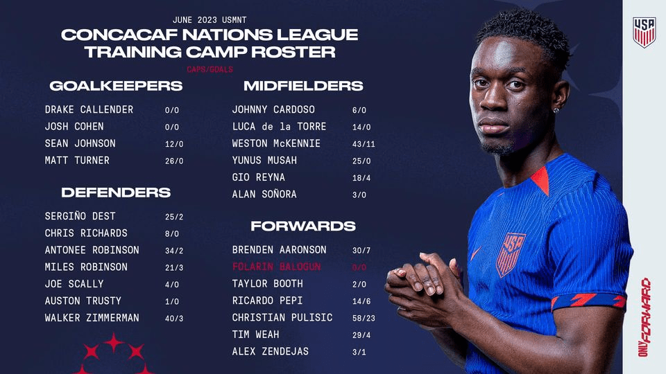 U.S. Soccer’s Nations League roster includes Folarin Balogun’s first call-up