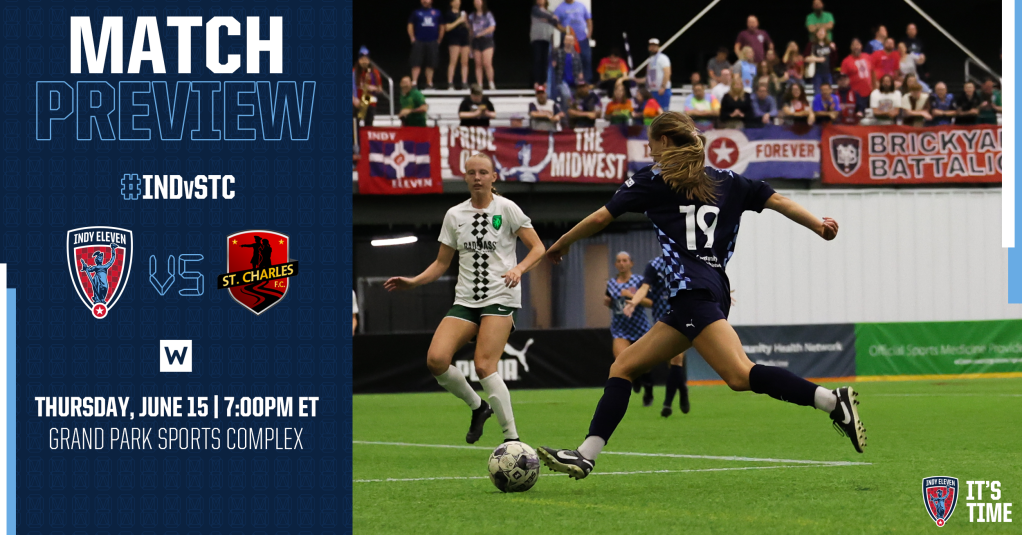 Indy Eleven is back for its second home match in a row when it hosts St. Charles FC. Indy still holds the top spot in the USL W League Valley Division with 16 points while St. Charles sits fifth in the division with two points.