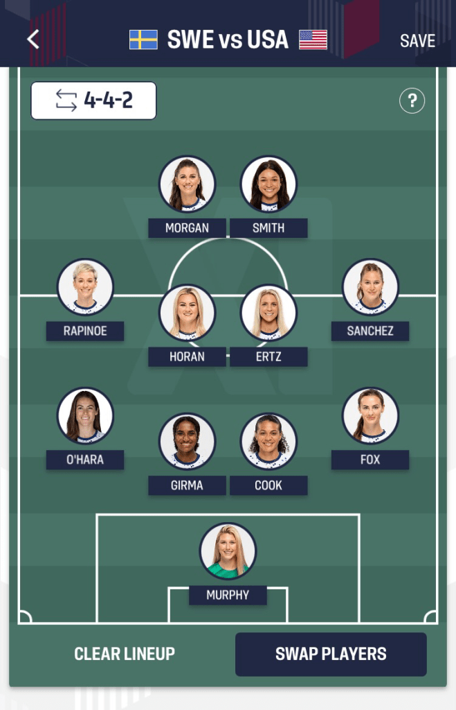 This time, Morgan’s cross from the endline finds a wide-open Rapinoe, who threads the needle past a diving defender and the goalkeeper.