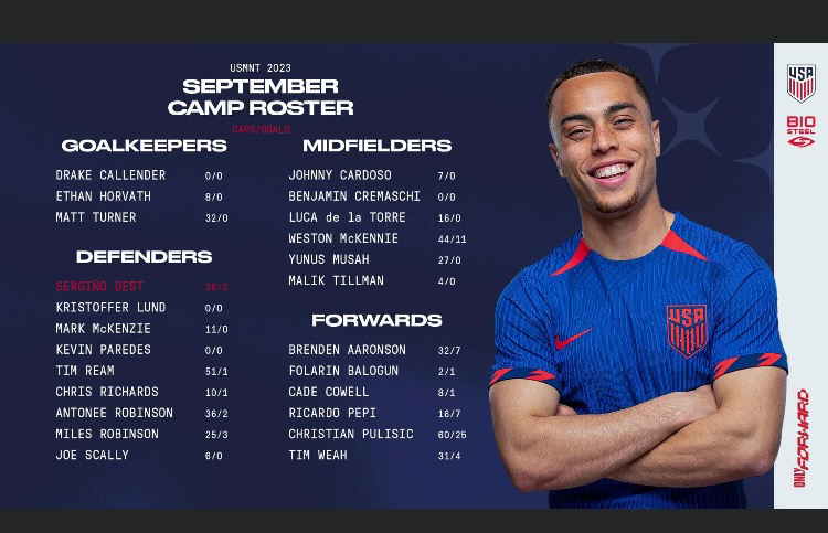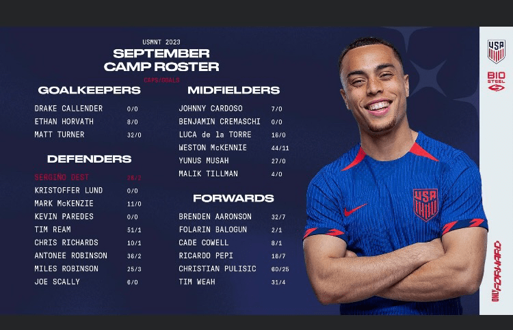 Impressive roster for the Sept friendlies next weekend – as the US plays friendlies while Europe has Euro’s Qualications, Africa has the African Cup and South America does World Cup Quals starting Thursday – next Tues. Cool to see Paredes and Cardoso and Malik Tillman along with newcomers Drake Callender & Ben Cremaschi from Inter Miami.