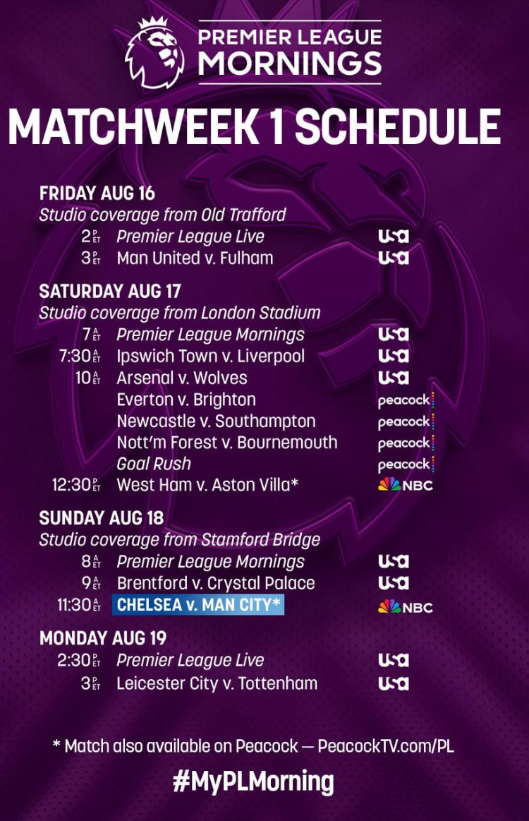 12:30 pm NBC West Ham United vs Aston Villa