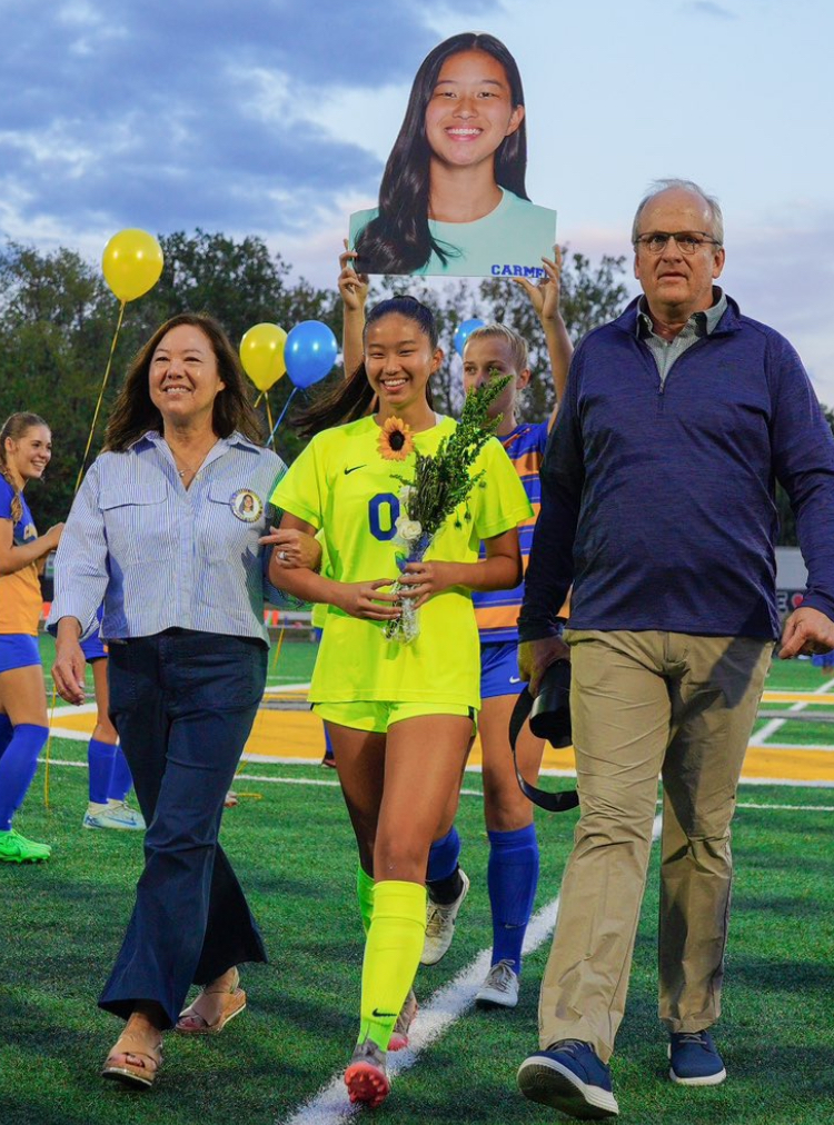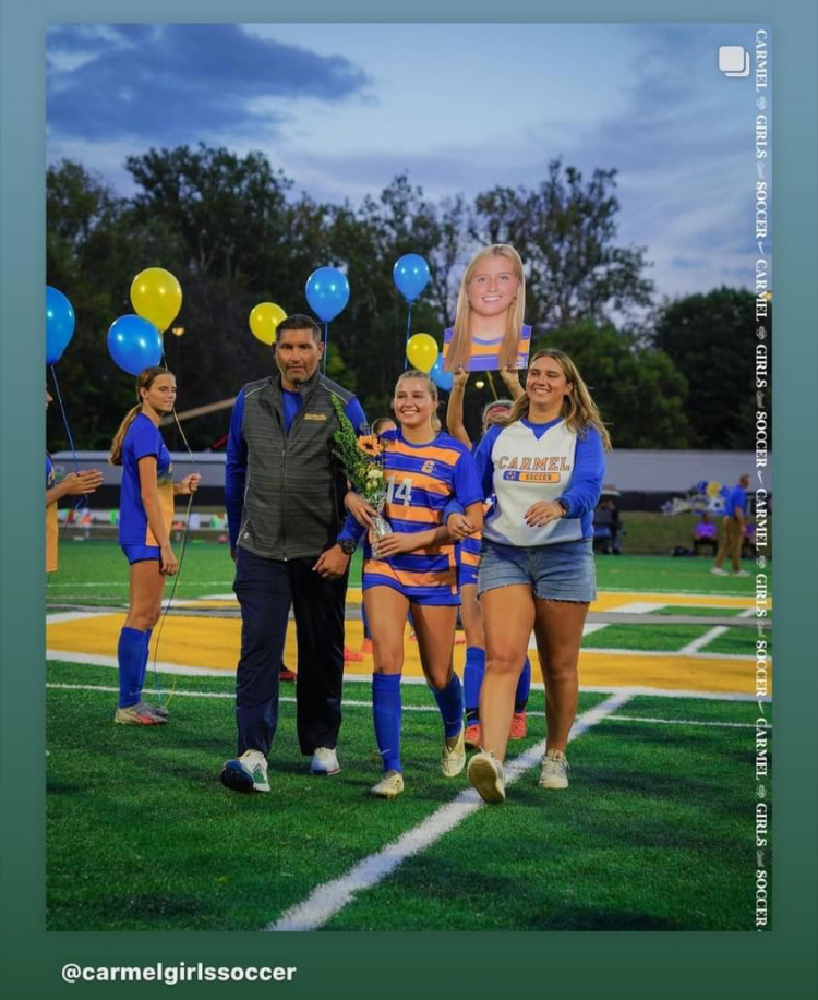 Carmel Senior Rosie Martin with former Carmel FC Coach Andy Martin and sister and former CFC & Carmel High player Cici Martin.
