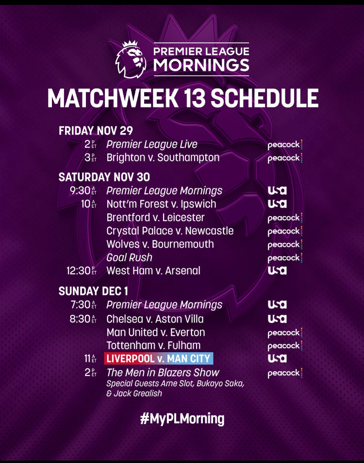 2:30 pm Peacock Fulham (Jedi) vs Brighton