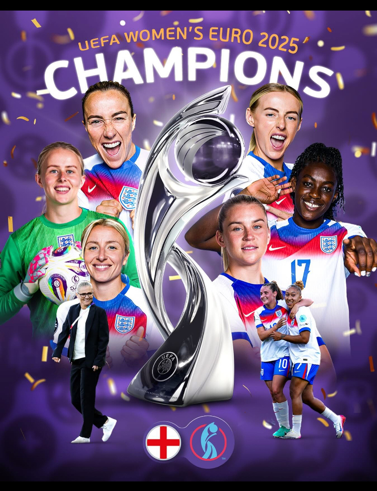 The Lionesses celebrate retaining the trophy they won in 2022 (Maja Hitij – UEFA via Getty Images)
