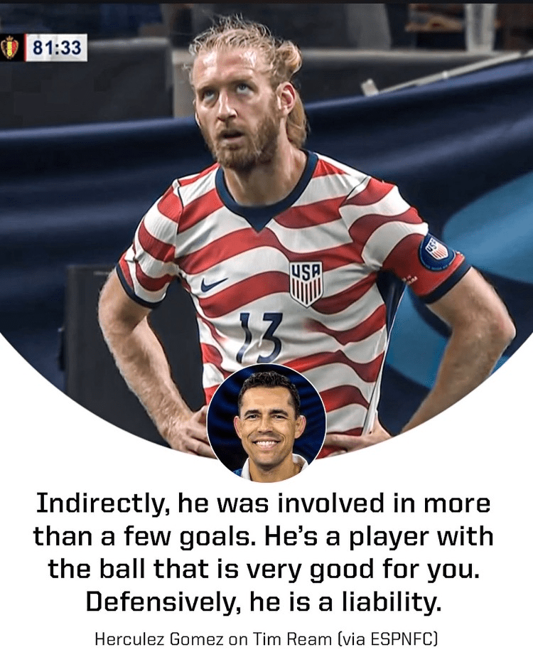 Ok I am going to be honest I did not see this coming. Yes I predicted a loss — 2-1 but 5-1. I can’t remember the last time the US conceded 5 goals in a game. Five goals? For those questioning my questioning of this defense – there it is. Lets start with the back 4 – not a bad idea to start with line-up against a superior team like Belgium – but Timmy Weah was way out of his league vs Doku – one of the best wingers in the world. I also thought Mark Mckensie was turned a # of times and did not have the best game as 3 of the goal attacks came down the left hand side. Tim Ream continued to show he is TOO OLD to play in the middle against Top 10 competition. Listen I love Tim Ream – have his Fulham jersey in my closet – but at 40 his foot speed is simply too far behind to play good teams. I would say he was involved on 3 of the goals – places where a good centerback makes the play. The lone bright spot was Jedi Robinson in an attacking role though his D could have been better. I know Chris Richards and Tim Robinson were hurt – but this might have showed we are a 3-5-2 team now. We needed 5 on defense vs Belgium and whatever that was needs to end.