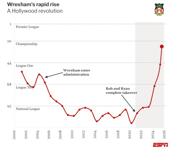 – After five years of Reynolds and Mac, Wrexham are on cusp of Premier League