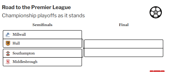 Middlesbrough, fresh from a 2-2 draw at Portman Road and Hull, who most recently drew 1-1 with Birmingham, are in the playoff spots.