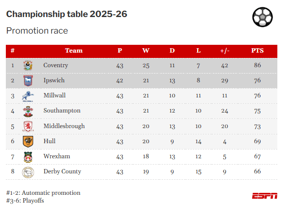 Championship promotion race: Ipswich, Millwall, Wrexham – who’s going up to the Premier League?
