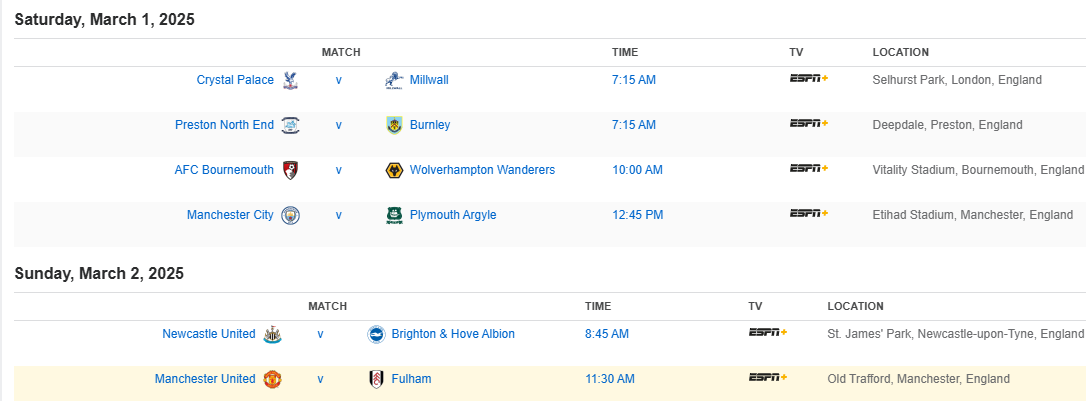 Burnley v Fulham – 9:30a on 12:30p on NBC: Antonee Robinson has been progressing well in training and reportedly could return to the field on Saturday as Fulham face Burnley. Fulham are in fifteenth place and have lost their past two matches. They will look to get back on track against a Burnley side that is second worst thus far and have lost six straight matches.